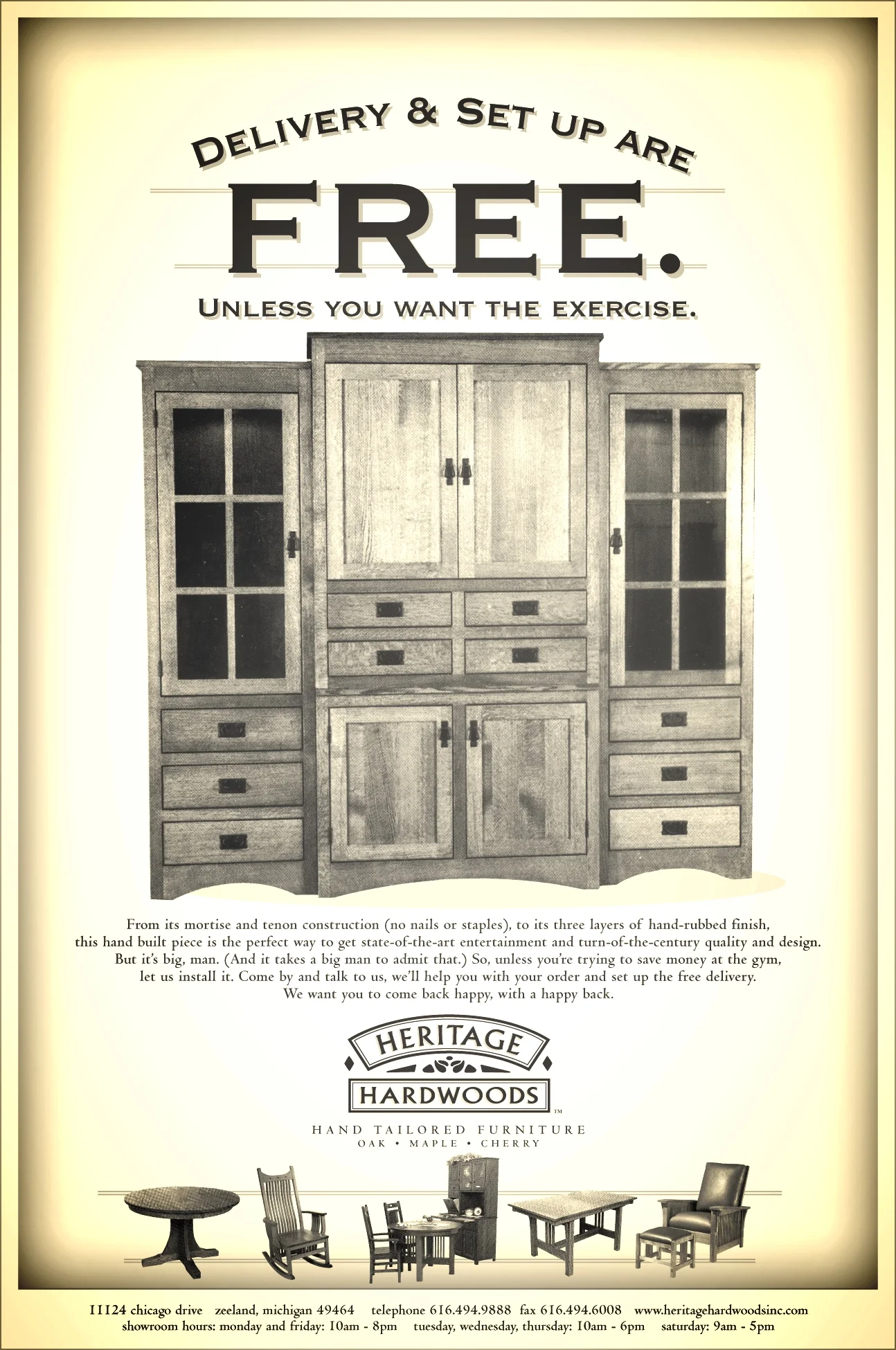 With a house full of Stickley (all five brothers), Life Time, Lake Side and Roycroft furniture, these ads were very easy to art direct, design and write. I'd suggest using a moving company for these “sturdy” pieces after buying.